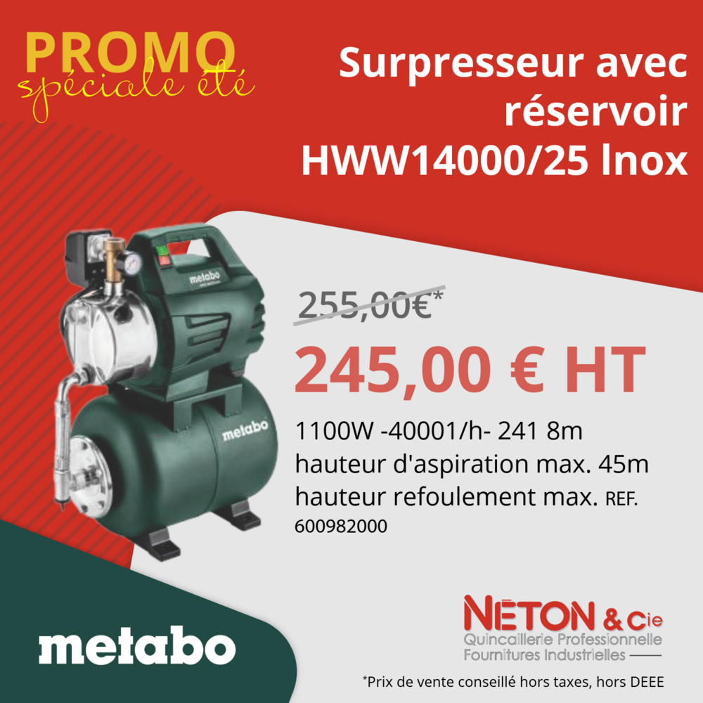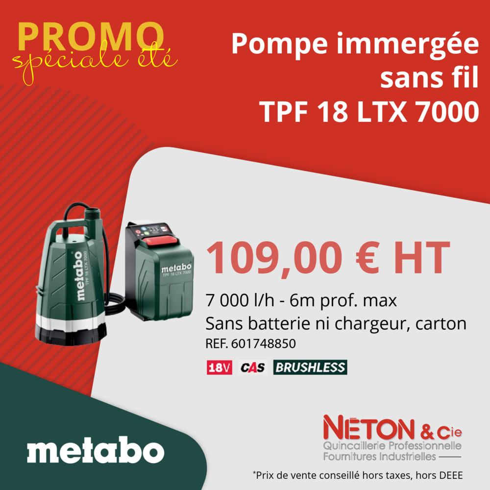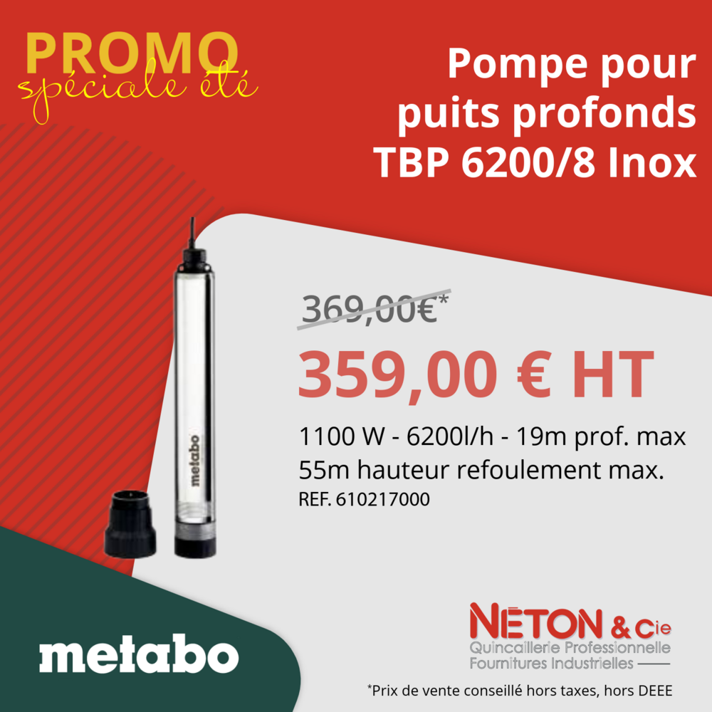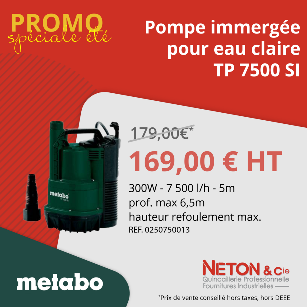 Profitez de nos offres exclusives sur une sélection de pompes et équipements Metabo, valables jusqu’au 31 juillet 2025 !